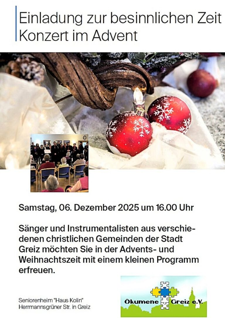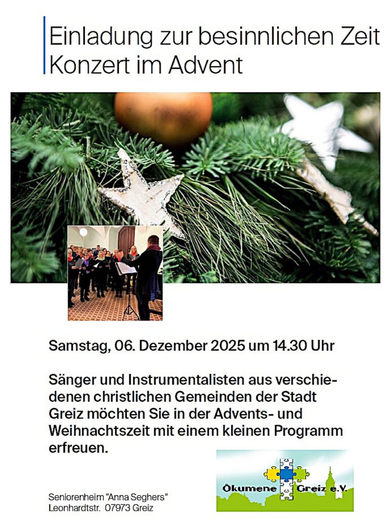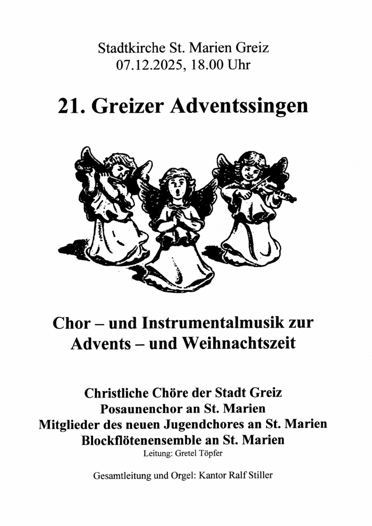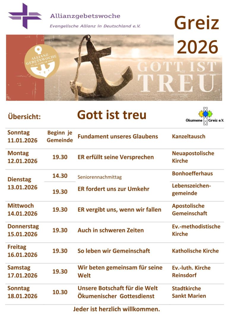 Hier finden Sie die Veranstaltungen der Gemeinden in der Kirchenregion Greiz im Überblick.