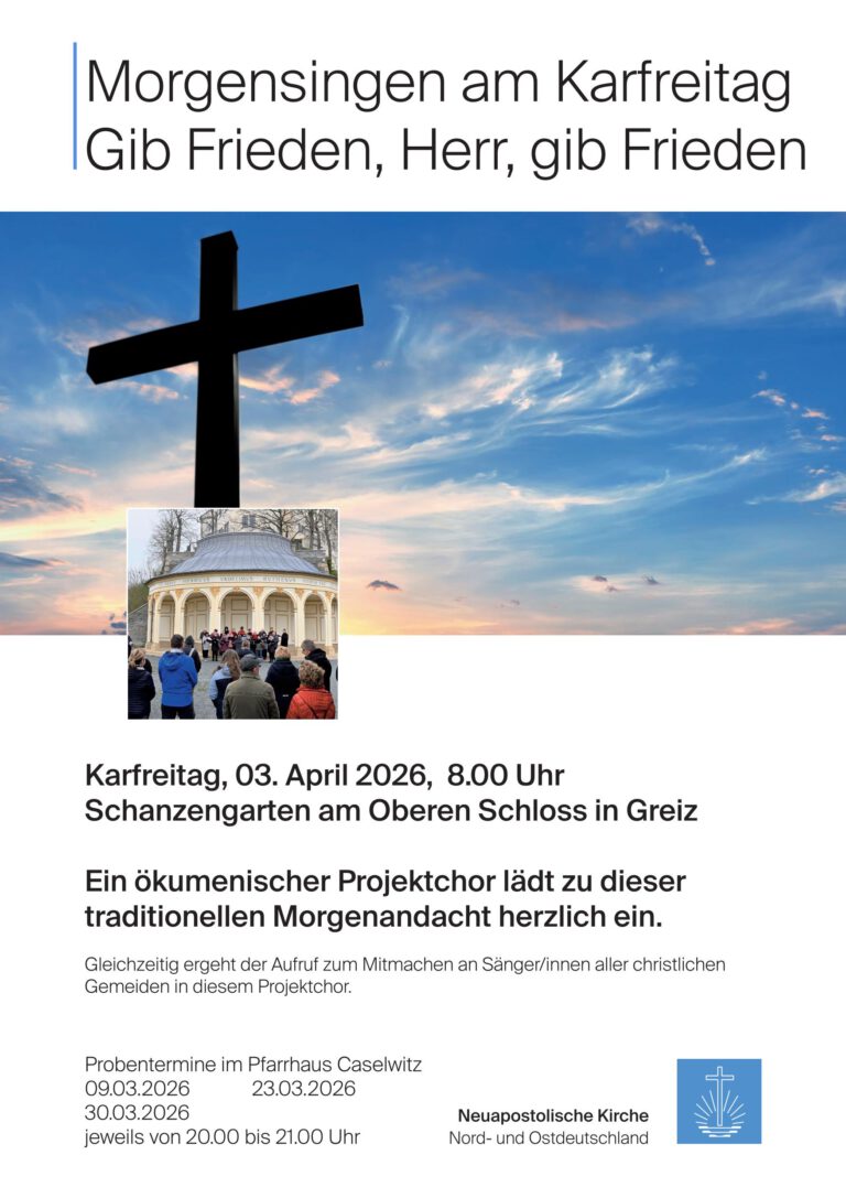 Geplant ist außerdem bereits ein Liedergottesdienst zum Erprobungsband am 22. März 2026, um 14 Uhr in der Dreieinigkeitskirche Zeulenroda mit dem regionalen Pop-Chor „Voices4Christ“.