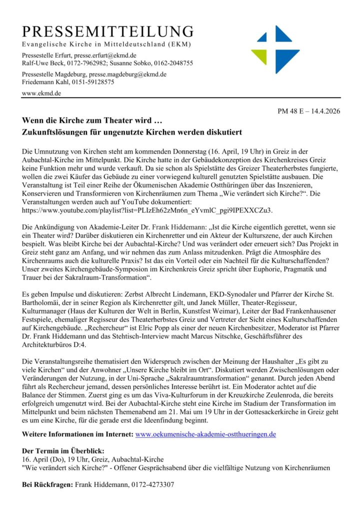 Das Karfreitagssingen ist seit 2024 ein gemeinsames Projekt der Ökumene in Greiz.